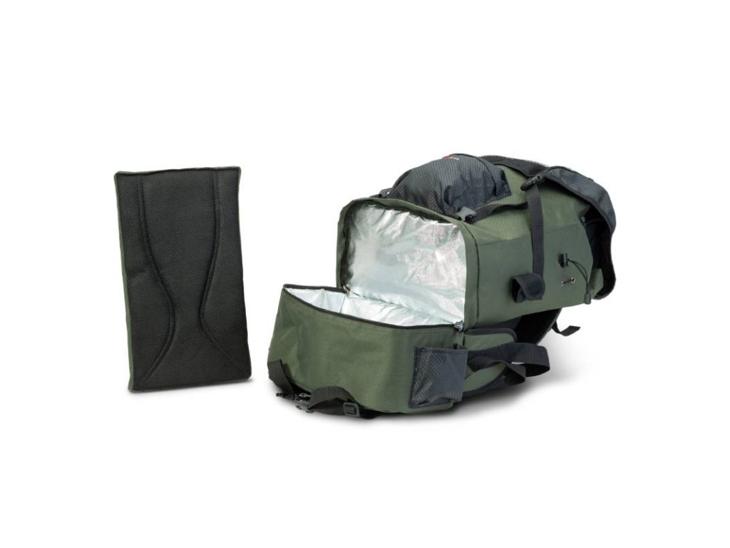 Perfektní batoh pro celodenní lov dravců! Díky extrémně velké hlavní komoře dáte dovnitř vše, co u vody potřebujete. Zadní část je opatřena polstrováním v oblasti zad a ledvin, které lze odejmout a použít jako sedák k zajištění příjemného pohodlí. Díky hrudnímu a bedernímu pásu se batoh velmi dobře nosí, a i když ho naplníte až po okraj, nebudou vás po celodenní chůzi bolet záda. K maximálnímu komfortu a stabilitě pomáhá také integrovaný ultralehký hliníkový rám. Ve spodní části je integrována chladicí kapsa. Na levé a pravé straně jsou popruhy pro přepravu prutů a podběráků, to oceníte třeba ve chvílích, kdy vyrazíte na svůj oblíbený revír na kole.