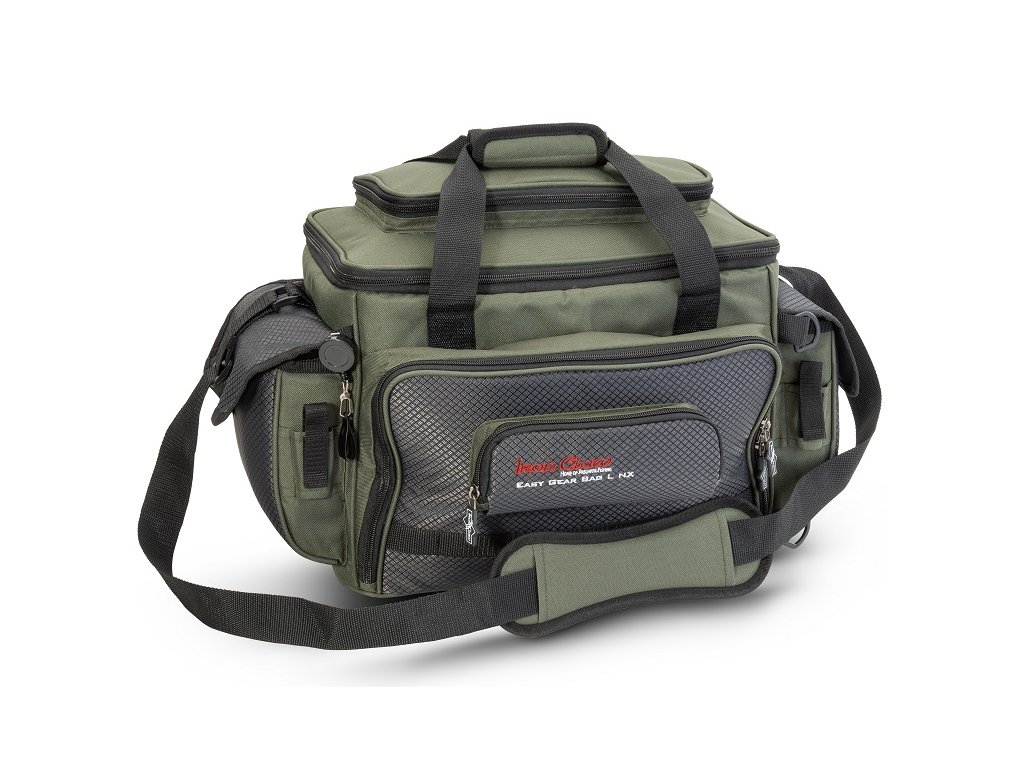 Přívlačová taška na nástrahy s mnoha vnějšími kapsami, do kterých můžete dát krabičky, peán, metr, povolenku a mnoho dalšího. V ceně jsou i čtyři plastové boxy na nástrahy, které jsou vyrobeny tak, aby přesně zapadly do hlavní kapsy. Velký model, Easy Gear Bag L NX, má na přední straně kapsu na polarizované brýle.
