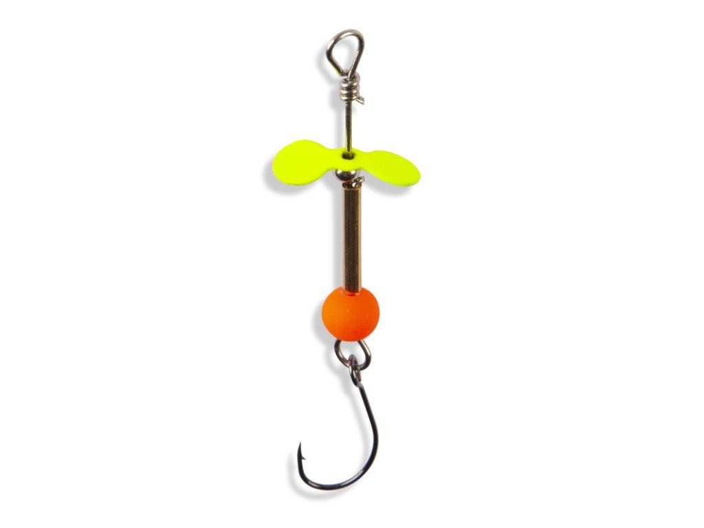 Nástraha na opatrné pstruhy. Tato nástraha je velmi drobná a vodou klouže bez nejmenších potíží, proto v rybách nebudí žádné podezření. Rotující vrtulka vysílá do okolí vibrace a záblesky, kterými na sebe upozorní i na velkou vzdálenost. Rotačky jsou osazeny pouze jednoháčkem s mikroprotihrotem, který ulovené pstruhy tolik nezraňuje a zároveň zajistí, že vám po záseku nespadne tolik ryb, jako z trojháčku.