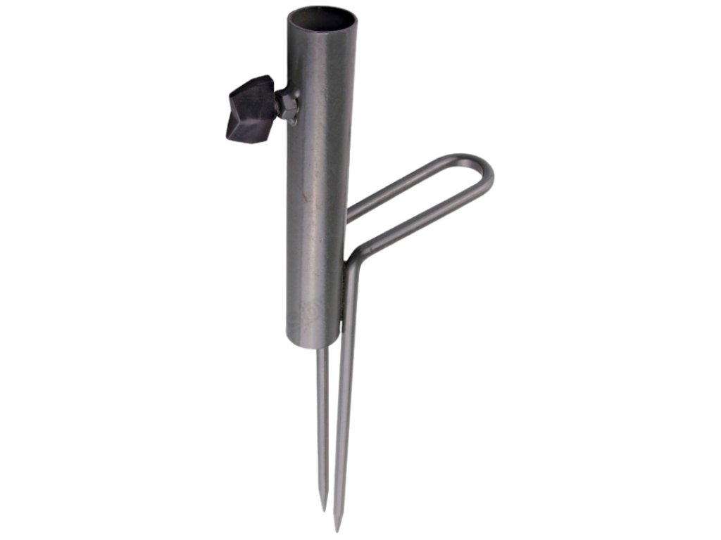 Zapichovací noha pro uchycení deštníku. Noha se snadno zapíchne do země, potom stačí jen vložit deštník a zajistit aretačním šroubem.