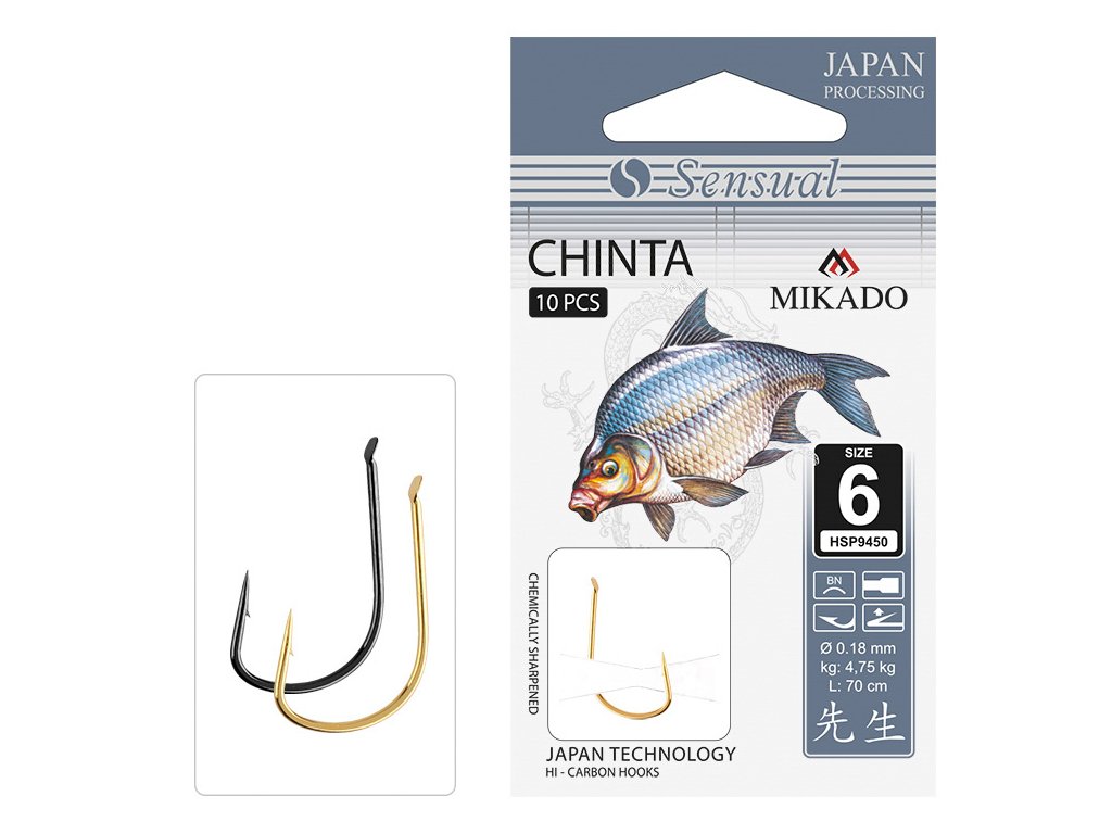 NAVÁZANÉ HÁČKY - SENSUAL - CHINTA VEL. 10 G / VLASEC 0.10mm/70cm - 10 ks