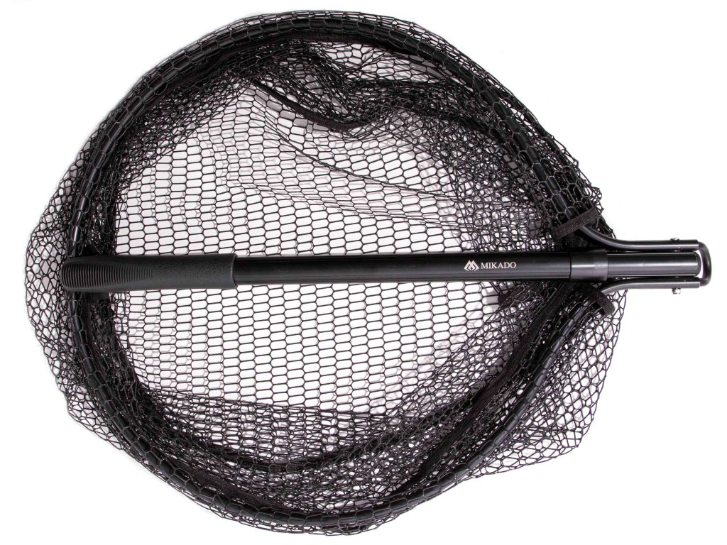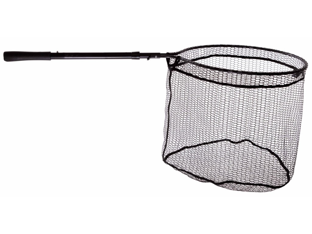 Podběrák s pogumovanou síťovinou a automatickou rukojetí, která umožňuje okamžité prodloužení dosahu podběráku o dalších 30 cm.