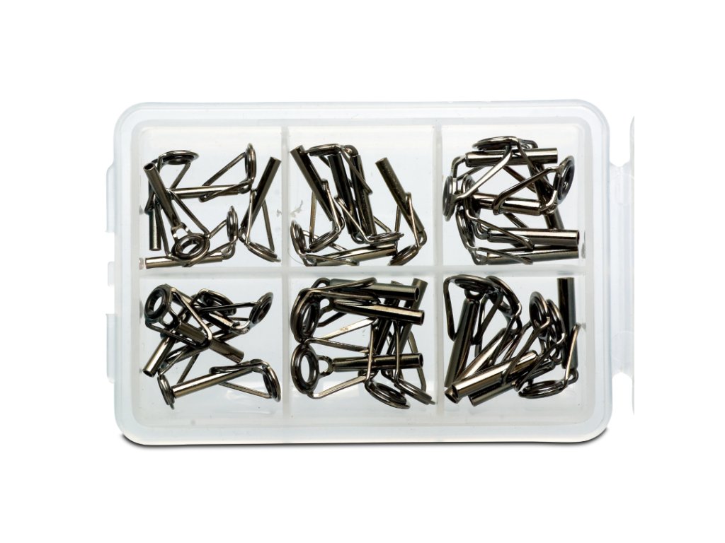 Plastová krabička obsahující 60 ks SIC oček. Titanové provedení pro všechny běžné špičky prutů.