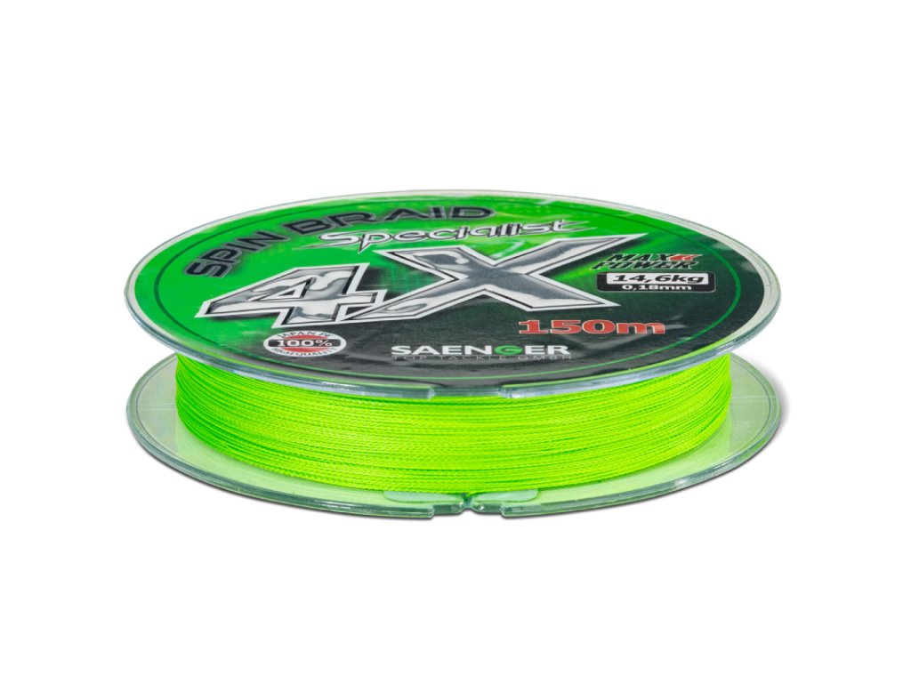 Saenger šňůra Specialist Spin Braid 4X 0,16mm 12,2kg 150m Fluo Green