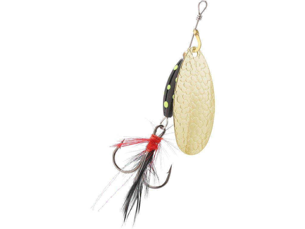 Rotační třpytka se širokým křidélkem a s těžkým, barveným tělem, které umožňuje prolovovat i ty nejméně přístupné místa a tůně v korytě řeky. Střapce zvyšují atraktivitu a četnost záběrů.