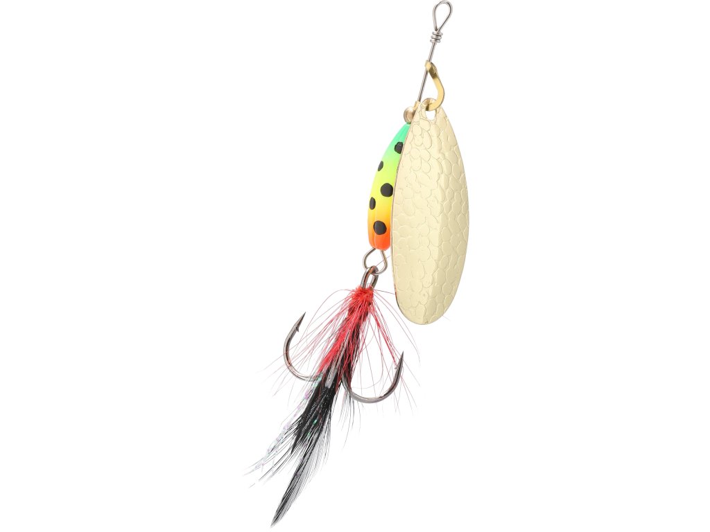 Rotační třpytka se širokým křidélkem a s těžkým, barveným tělem, které umožňuje prolovovat i ty nejméně přístupné místa a tůně v korytě řeky. Střapce zvyšují atraktivitu a četnost záběrů.