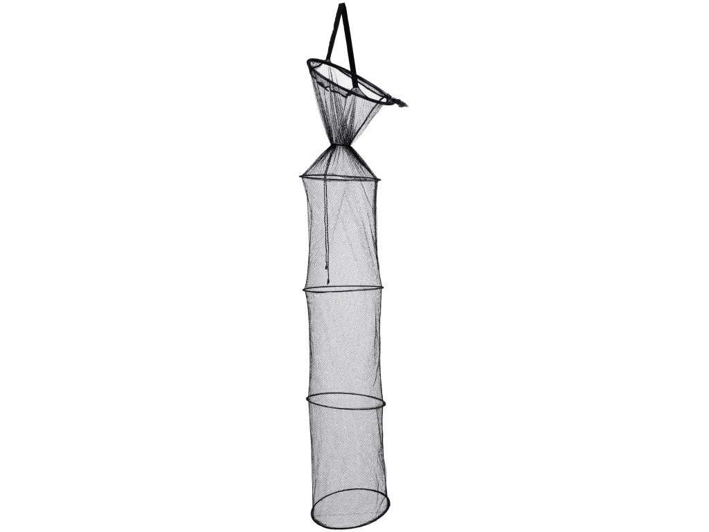 Populární, rychle potápivý vezírek s kovovými obručemi pro uchovávání ulovených ryb ve vodě. Kvalitní zpracování a možnost zavěšení přes popruh nebo uchycení na vidličku pomocí stavitelného kloubu zvyšují komfort a bezpečnost ryb.